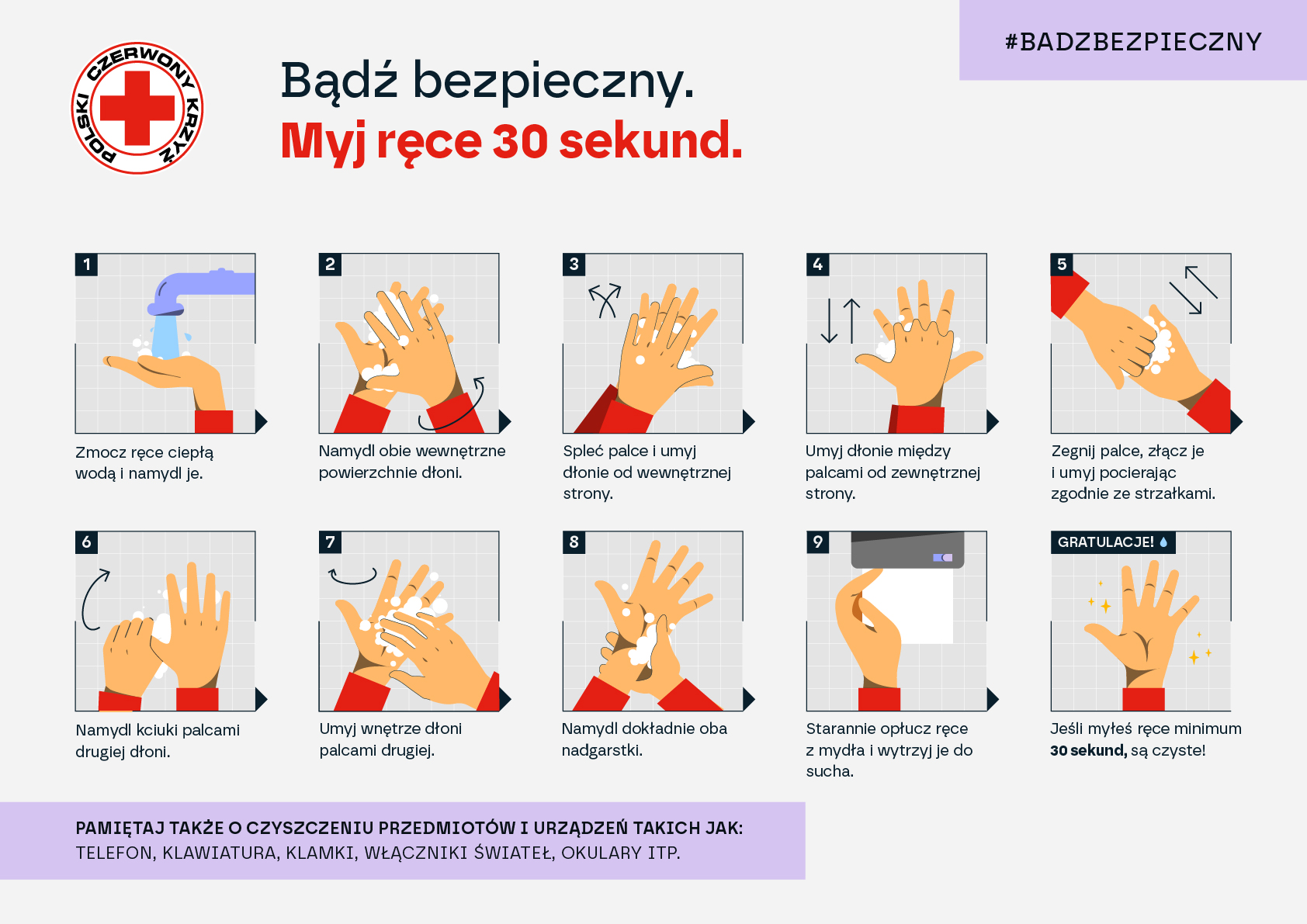 - Dbaj o higienę, często myj ręce mydłem w czystej wodzie.