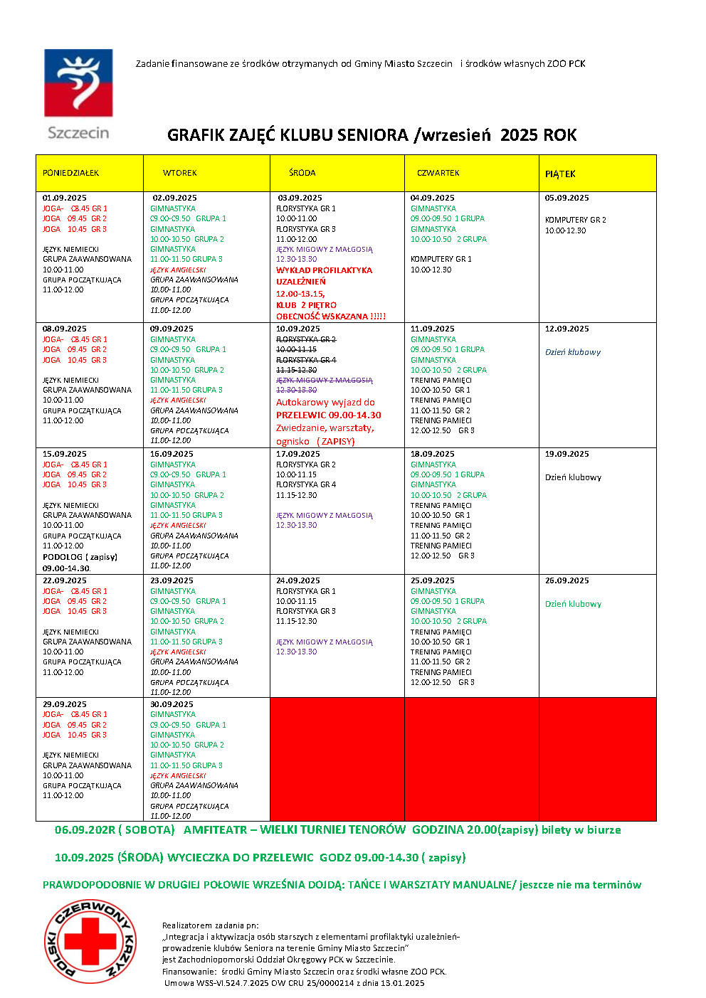 Klub Seniora (Grafik Pracy) | ZOO PCK Szczecin