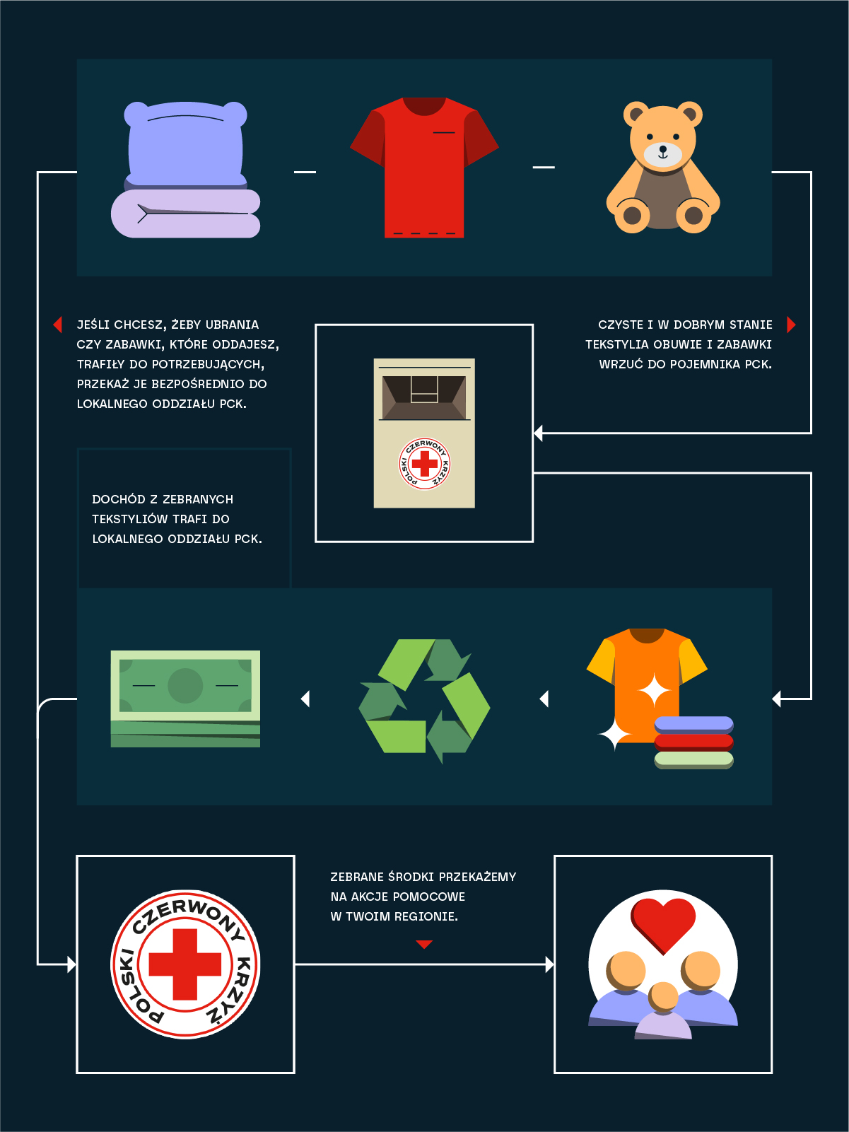 Do pojemników tych nadal można wrzucać tekstylia - dzięki temu dbasz o środowisko i promujesz idee drugiego obiegu, jednak nie wspierasz już działań pomocowych PCK.
