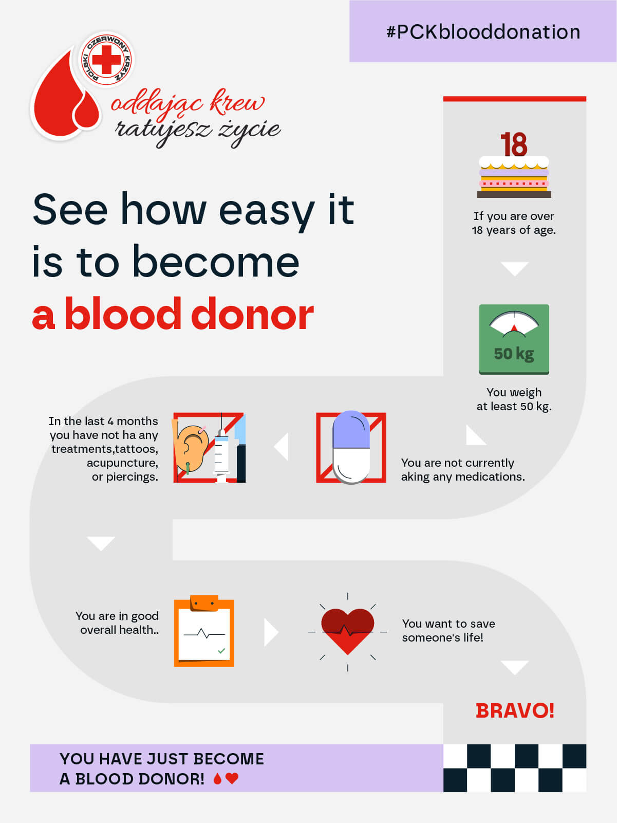 „Donating blood – you save lives” – this is the motto that has accompanied the activities of the Polish Red Cross for nearly 60 years. Since then, the association has been engaged in the comprehensive organization and promotion of voluntary blood donation, as well as raising public awareness about the crucial role of blood in saving human life and health.